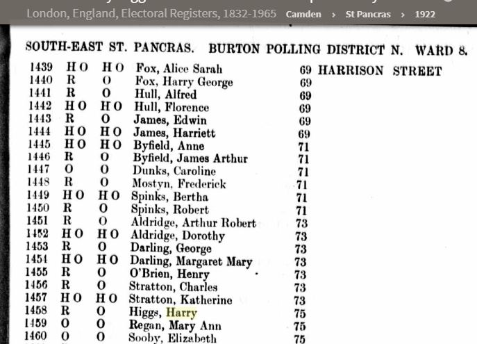 It may just be worth mentioning that we can also see a Harry Higgs living at 21 Harrison Street in 1922