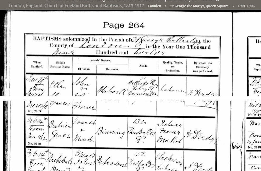 Daughter of Ernest and Maud Binning