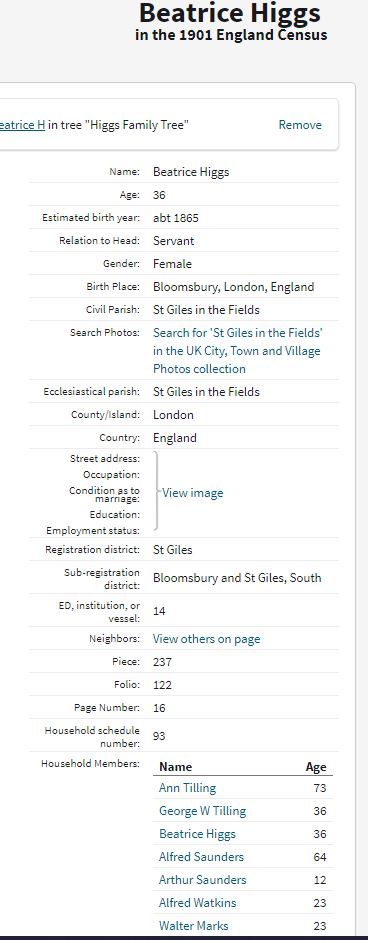 Image 589 shows her aged 36 in the 1901 census working as a servant in the Tilly family at 40 Castle Street - There’s a lot of boarders here! Need to check out Alfred Saunders 64, I’m sure we came across this family…