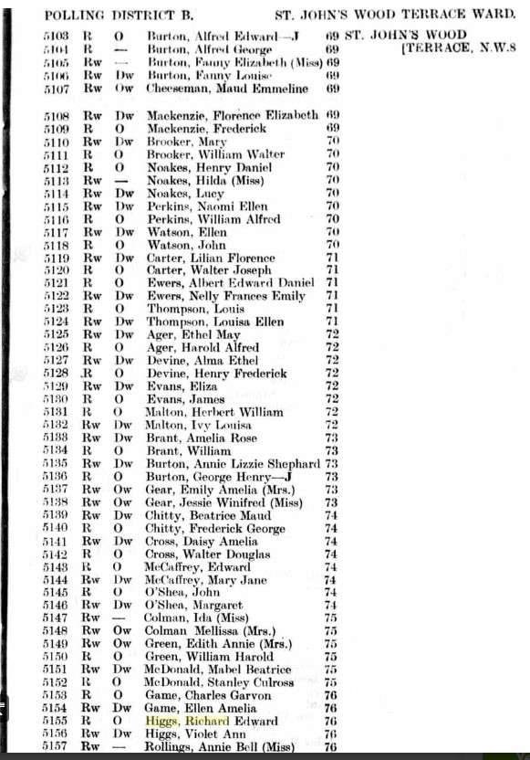 Richard and Violet MAY have once been living at St Johns Wood though, as this Electoral entry shows, Edward is shown as Edwin and Anne is shown as Annie. so maybe not!