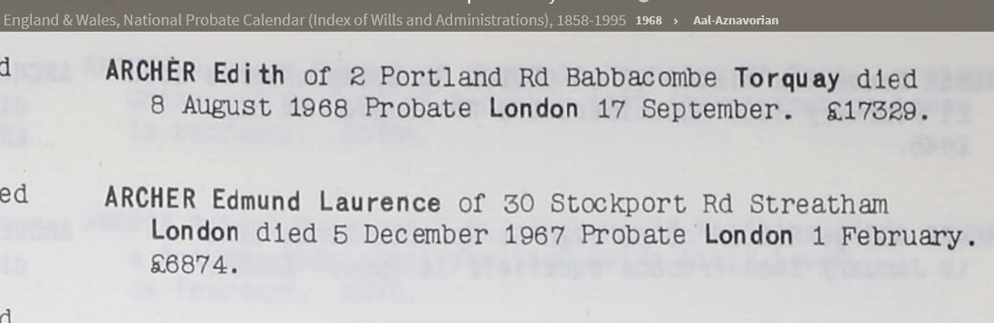 Edmund was the son of Emma Maria Peterson and Frederick Joseph Archer