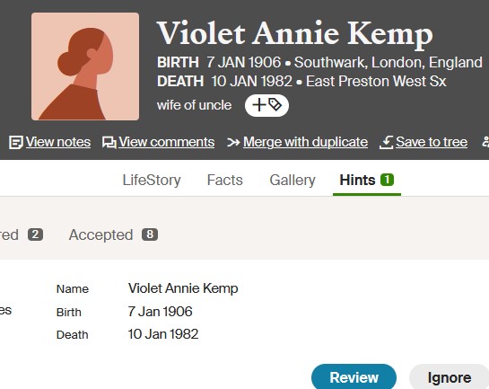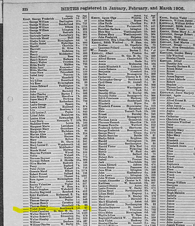 Some relevant entries from the Archive: 1911 age 5 [690], 1921 Census [1035], 1938 at Dombey Street [ 415], in 1939 at Ordnance Road[ 843], 1982 Probate entry [ 848]