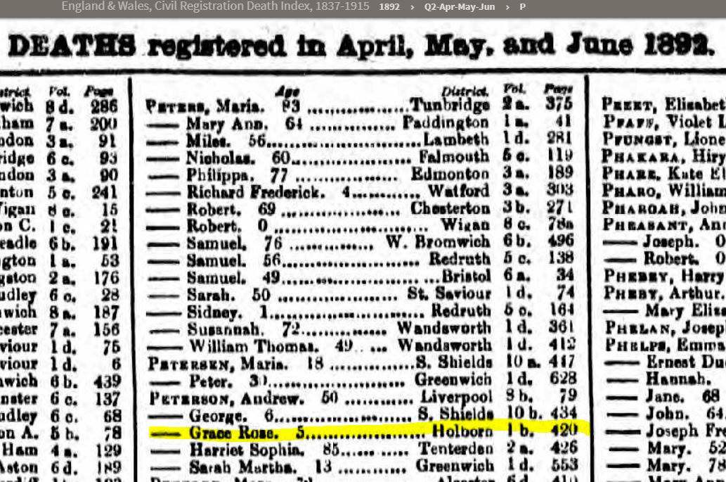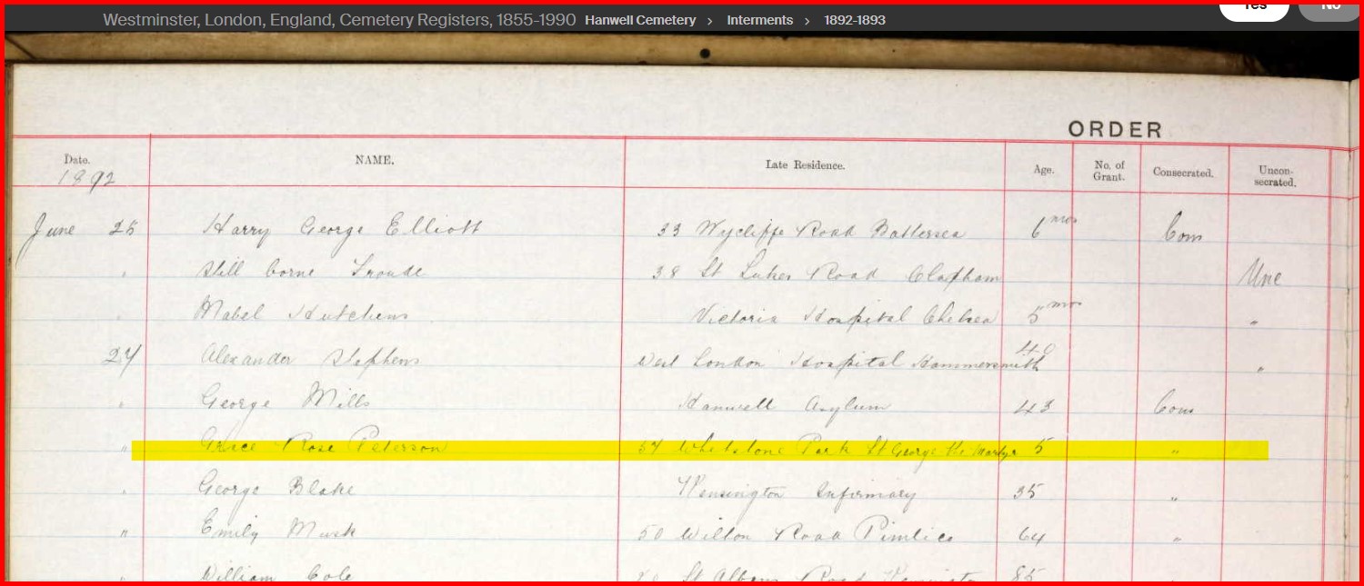 Sister of Edward John Peterson. She sadly died at 5 yrs-of-age