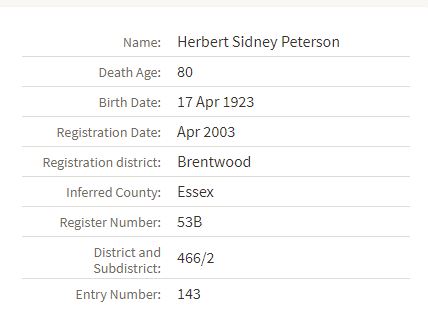 Herbert died aged 80 in 2003 at Brentwood, Essex