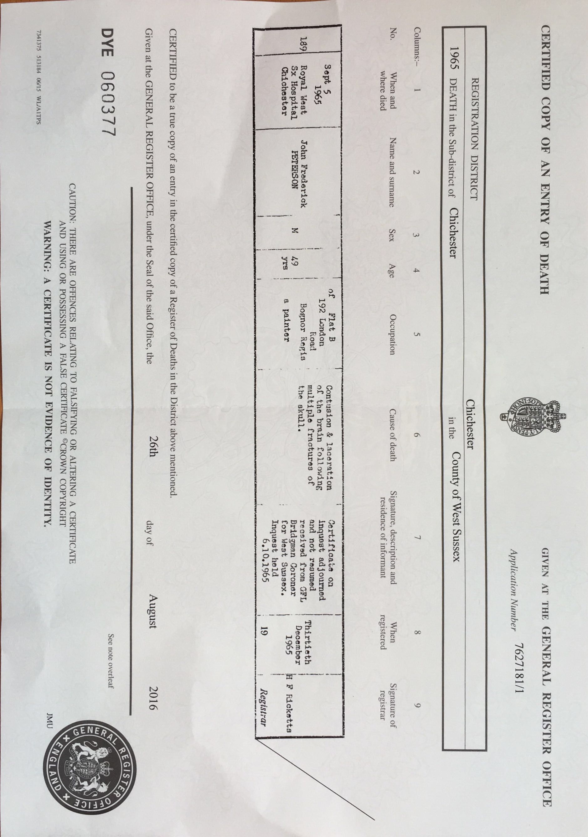 In the summer of 2017 I was able to go back to Bognor and search the newspaper archives from that time. The articles I found give the story of his untimely end and the resultant court case.