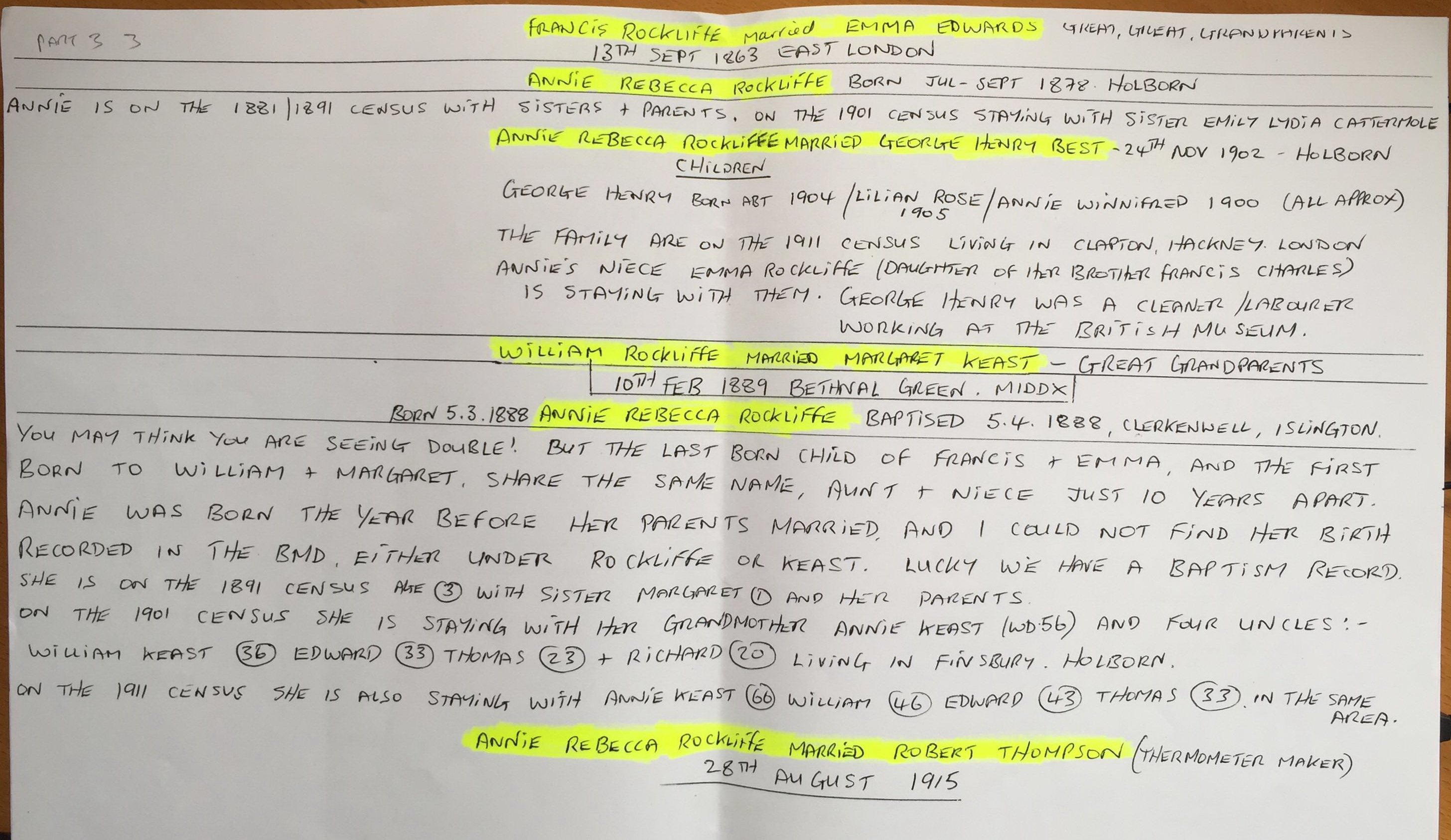 She is the younger of two Annie Rebecca's in the Rockliffe tree.