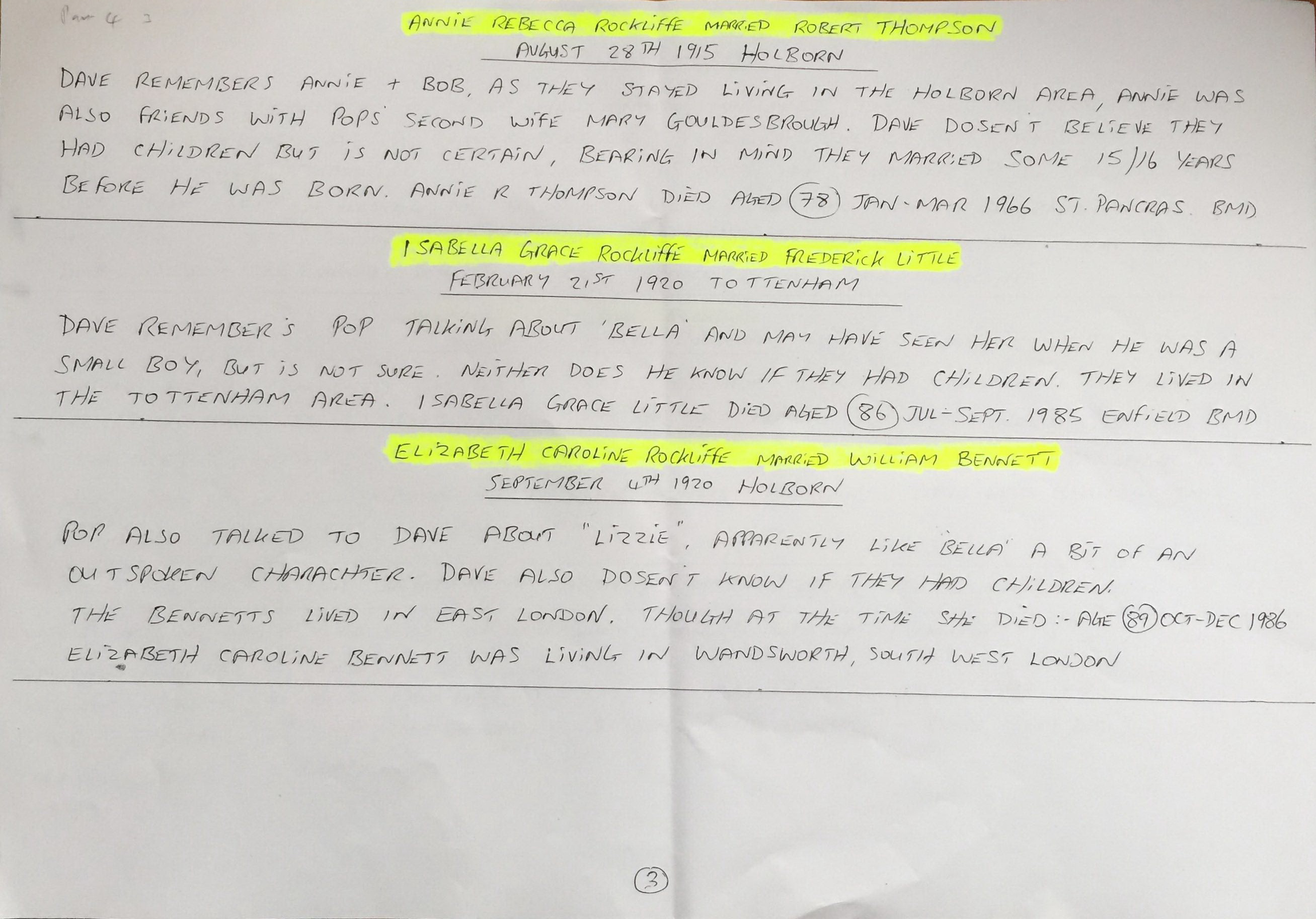 Annie was the younger sister of David T Rockliffe (known as 'Pop')