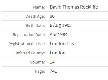 David Thomas(Pop) Rockliffe 1903 - 1984